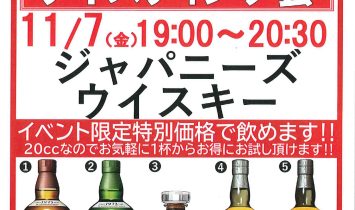 11月7日(金)ウイスキーテイスティング会@ハモニカ横丁…