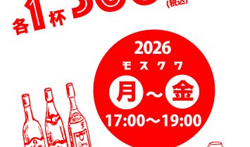 モスクワ毎週 月曜日〜金曜日17:00~19:001杯300円(税込)…