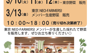 3/10(火)〜3/13(金)東京NEO-FARMERS!マルシェ東京NEO-FARMERS!メンバーが生産した採れたて野菜を販売! @ミュンヘン…