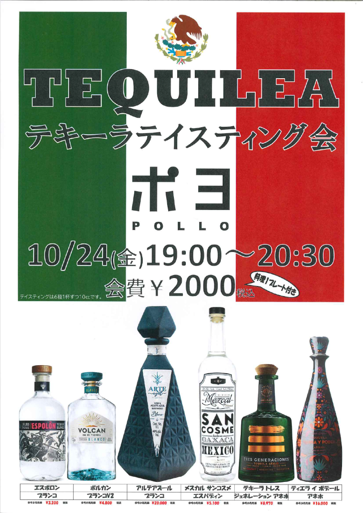 10/24(金)テキーラテイスティング会 19:00〜20:30 @ポヨ